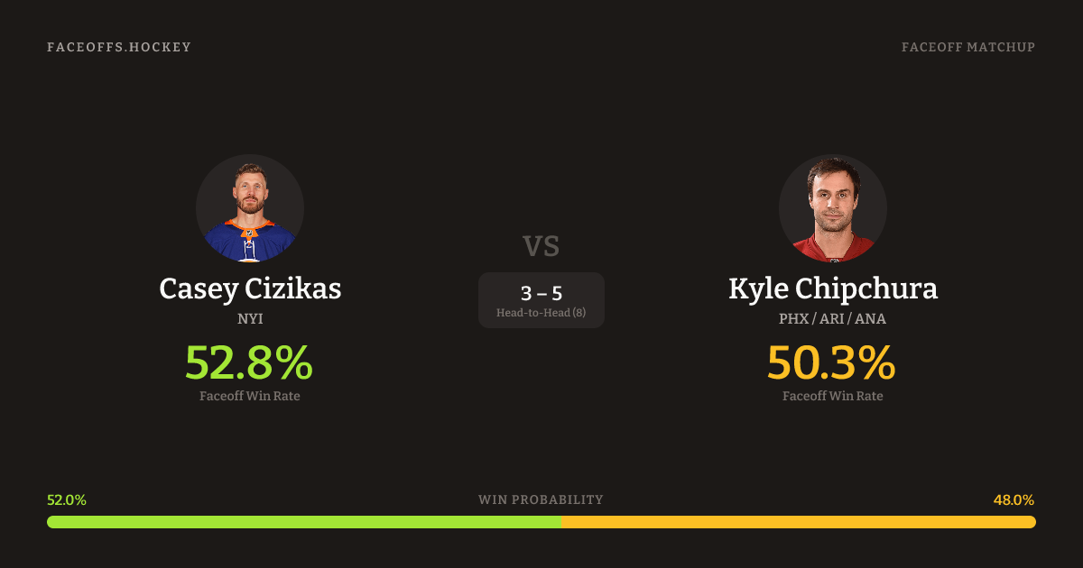 Casey Cizikas vs Kyle Chipchura — Faceoff Head-to-Head