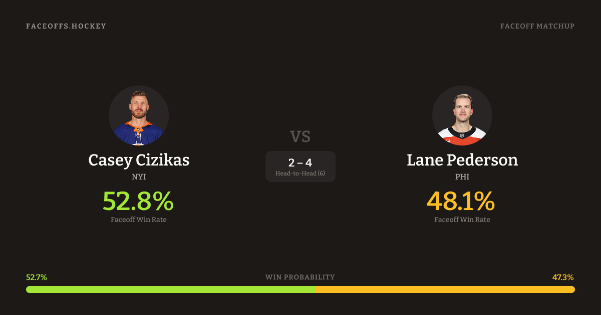 Casey Cizikas vs Lane Pederson — Faceoff Head-to-Head