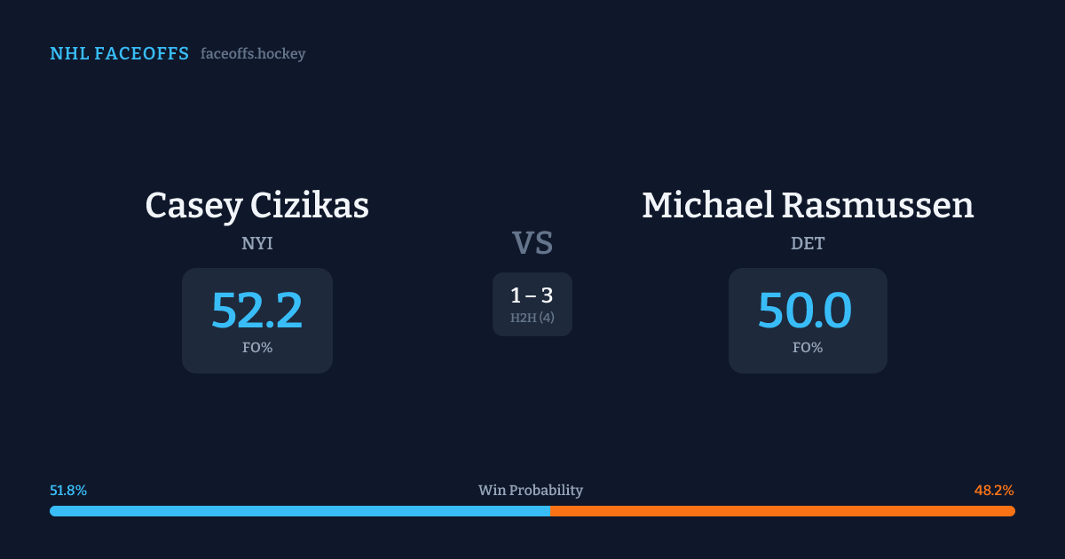 Casey Cizikas vs Michael Rasmussen — Faceoff Head-to-Head