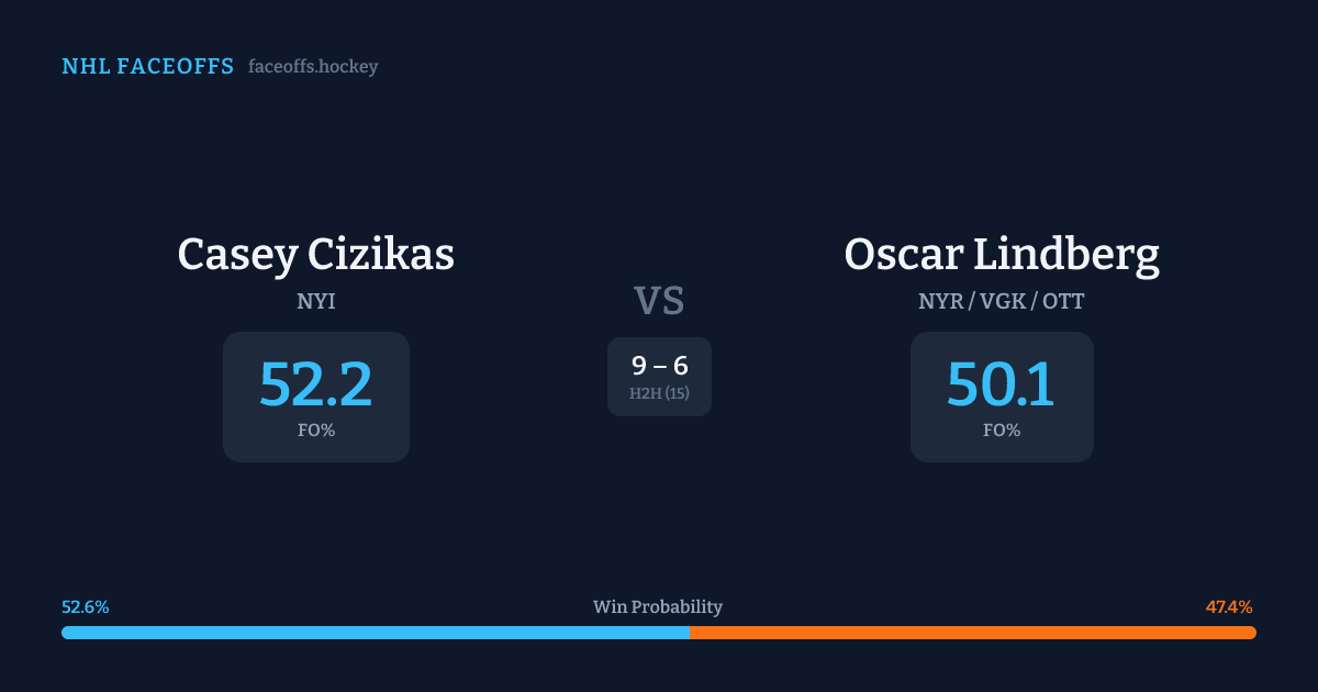 Casey Cizikas vs Oscar Lindberg — Faceoff Head-to-Head