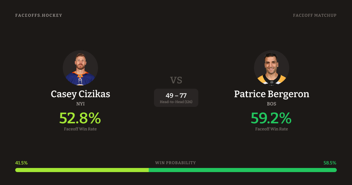 Casey Cizikas vs Patrice Bergeron — Faceoff Head-to-Head