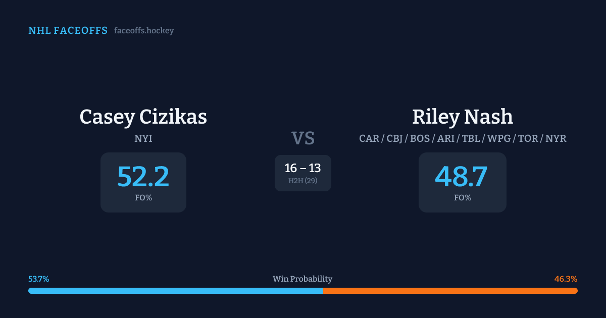 Casey Cizikas vs Riley Nash — Faceoff Head-to-Head