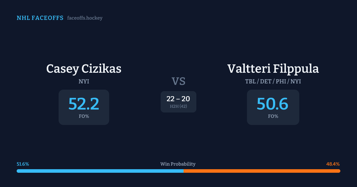 Casey Cizikas vs Valtteri Filppula — Faceoff Head-to-Head
