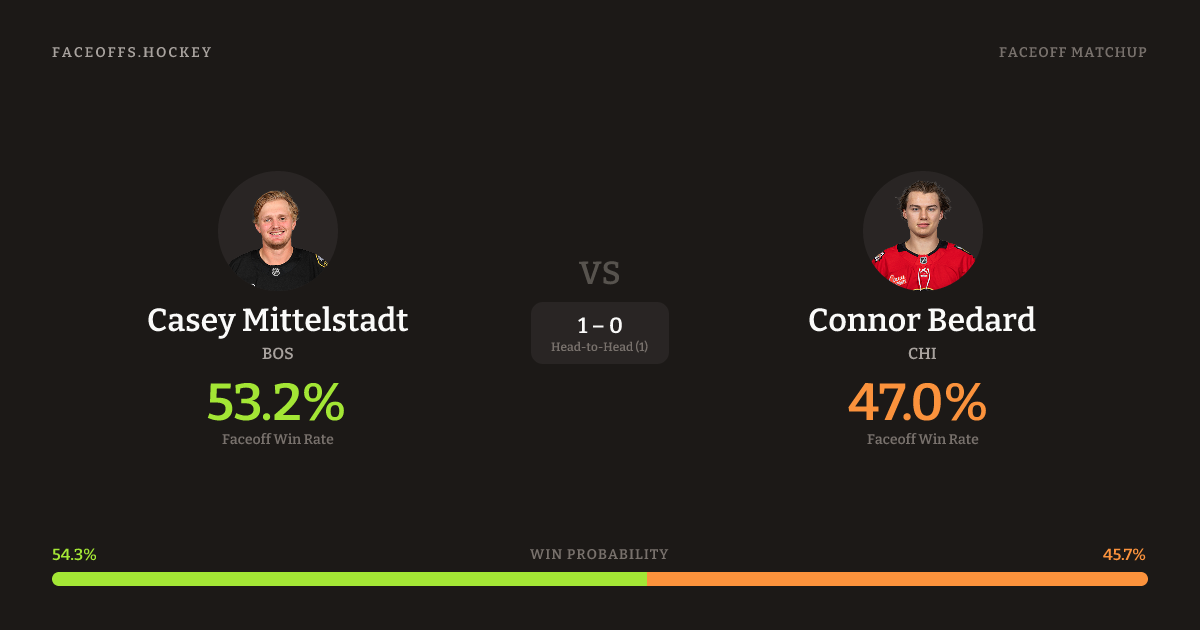 Casey Mittelstadt vs Connor Bedard — Faceoff Head-to-Head