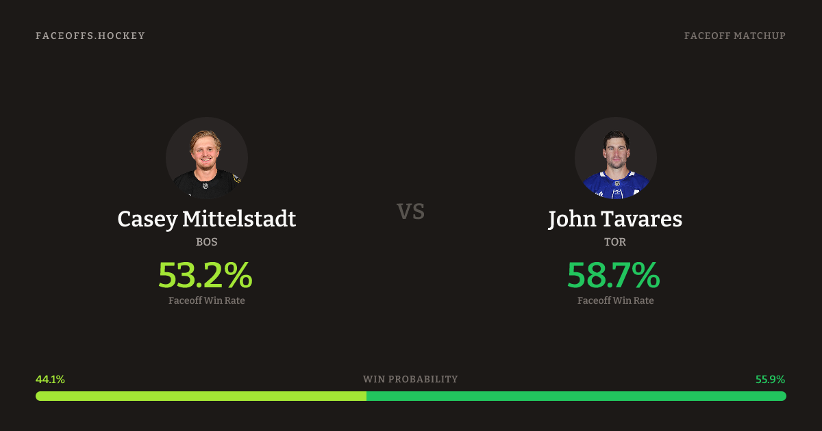 Casey Mittelstadt vs John Tavares — Faceoff Head-to-Head