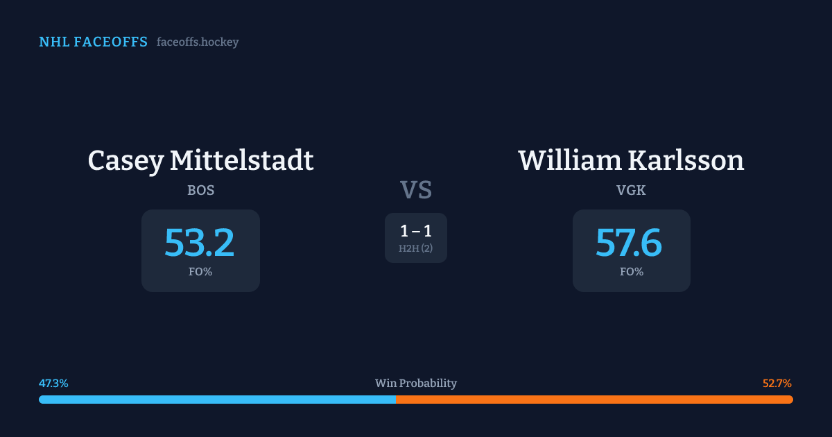 Casey Mittelstadt vs William Karlsson — Faceoff Head-to-Head