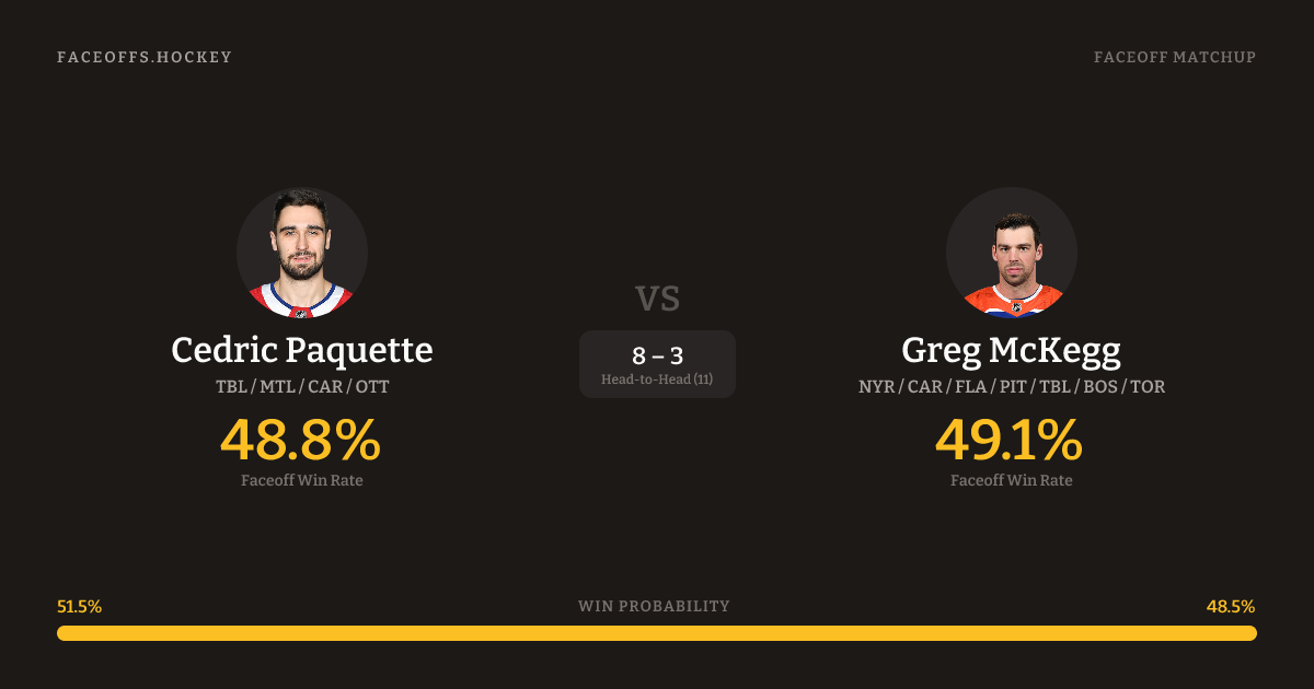 Cedric Paquette vs Greg McKegg — Faceoff Head-to-Head