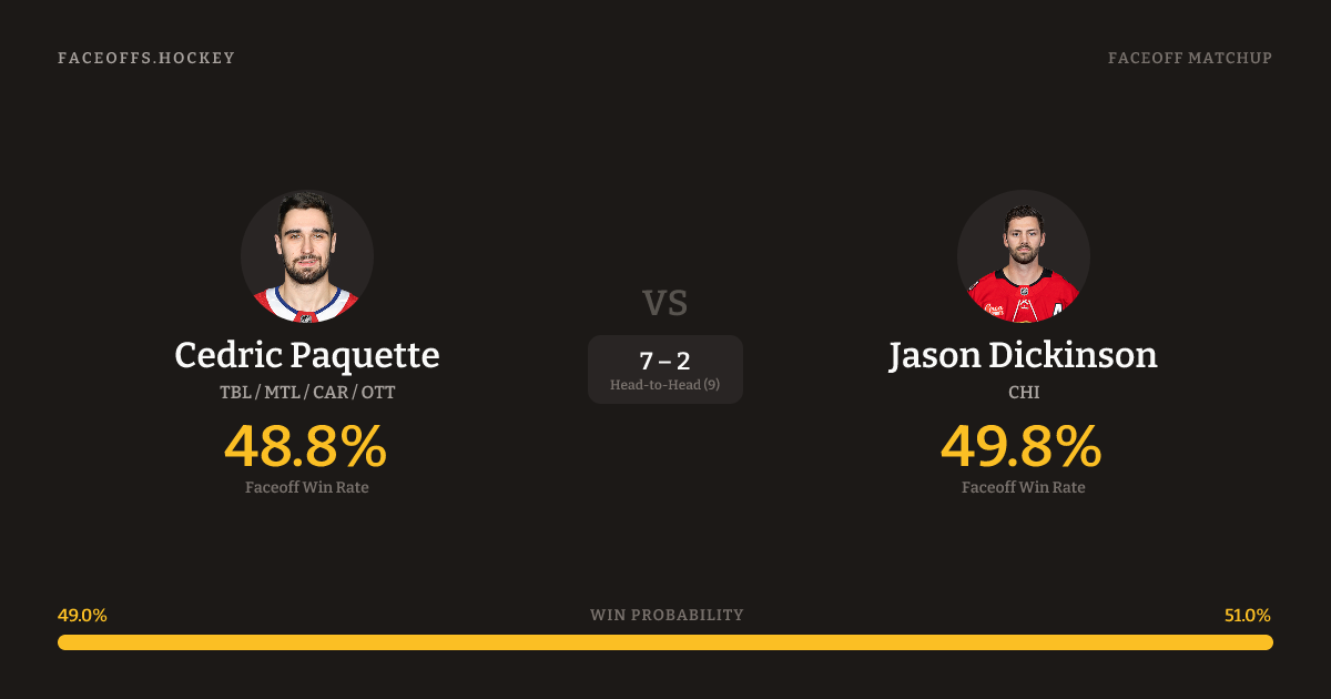 Cedric Paquette vs Jason Dickinson — Faceoff Head-to-Head
