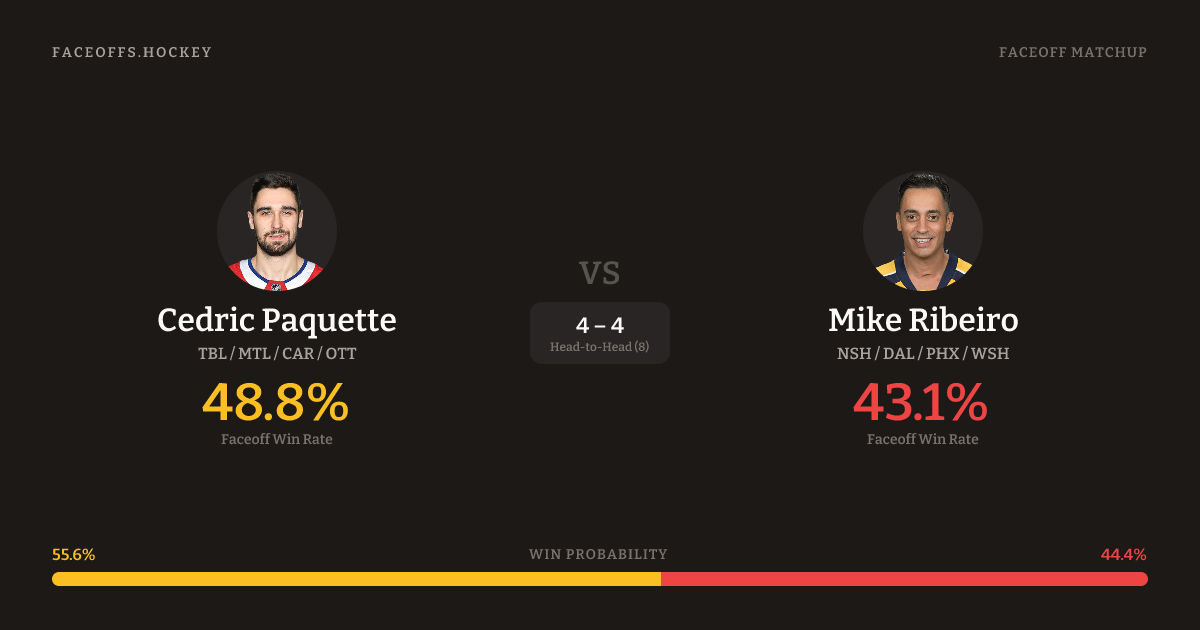 Cedric Paquette vs Mike Ribeiro — Faceoff Head-to-Head