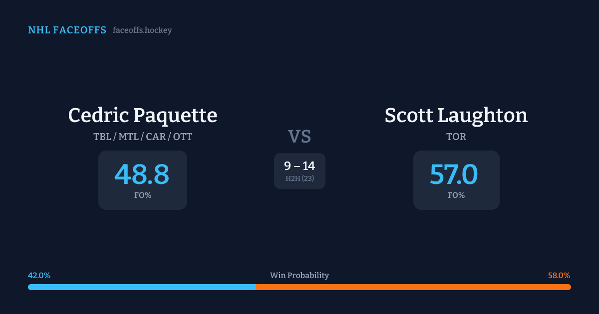 Cedric Paquette vs Scott Laughton — Faceoff Head-to-Head