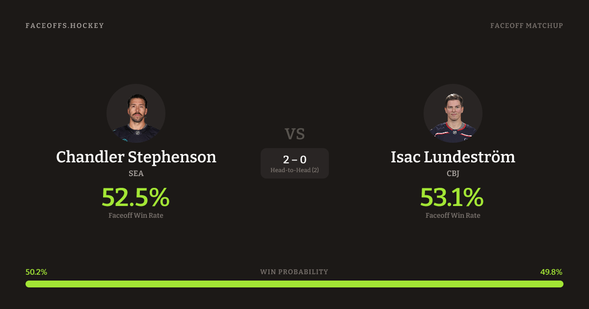 Chandler Stephenson vs Isac Lundeström — Faceoff Head-to-Head