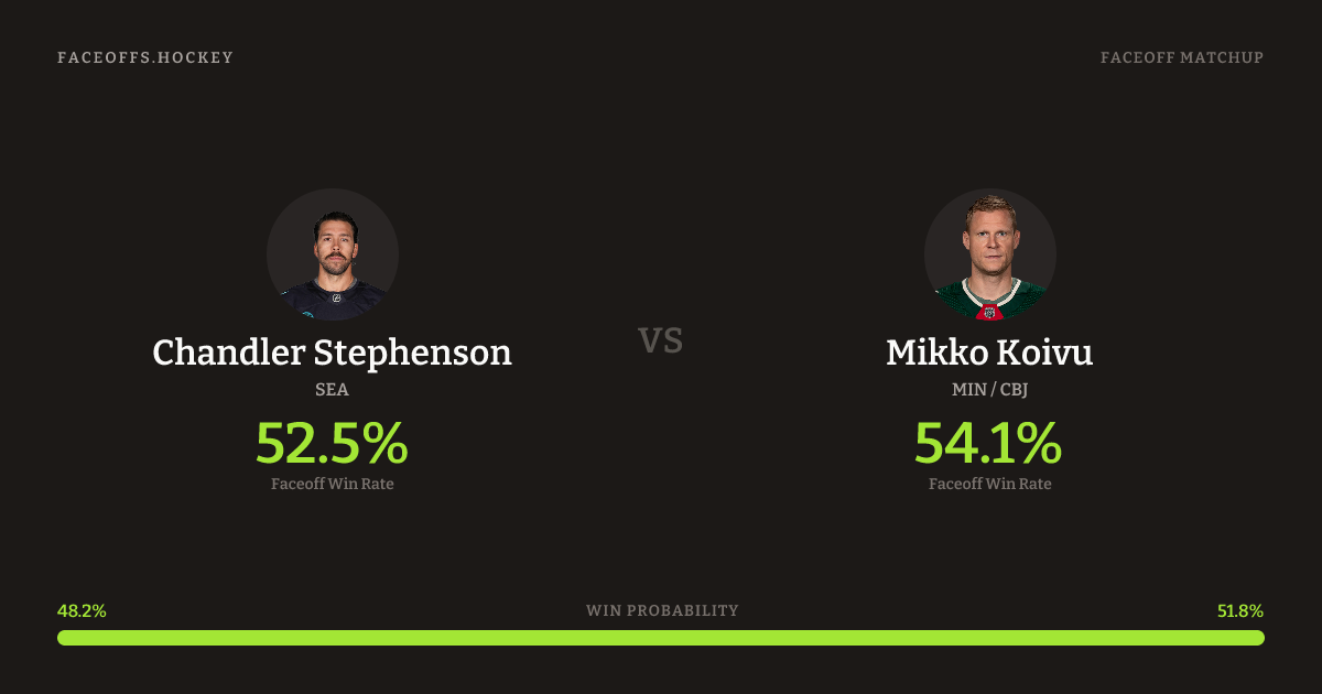Stephenson 52.4% vs Koivu 54.0% (-1.7%)