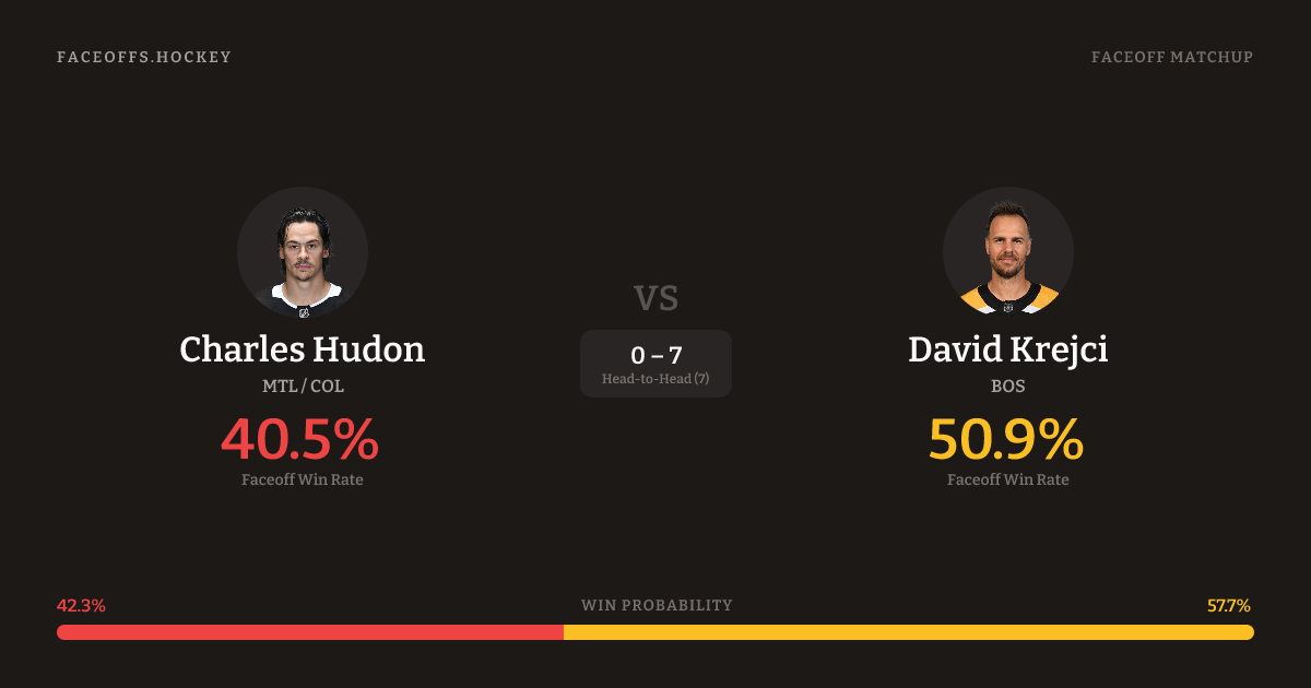 Charles Hudon vs David Krejci — Faceoff Head-to-Head