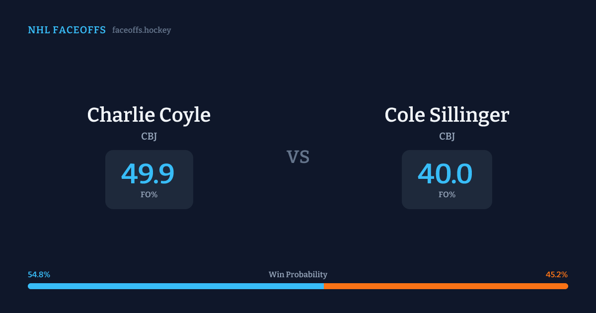 Charlie Coyle vs Cole Sillinger — Faceoff Head-to-Head
