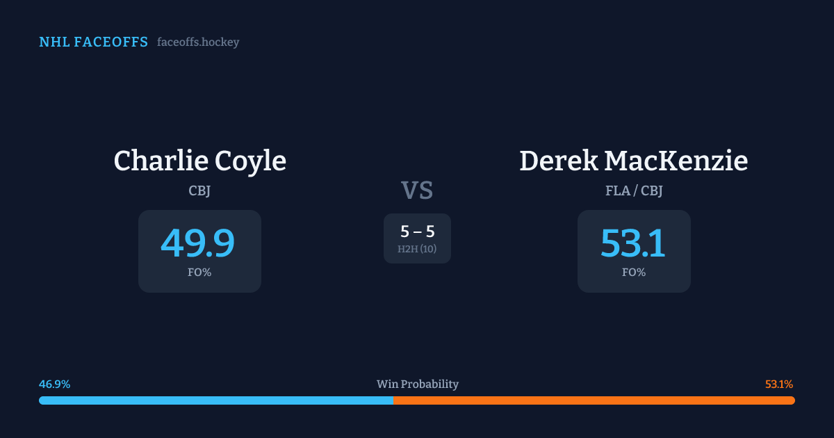 Charlie Coyle vs Derek MacKenzie — Faceoff Head-to-Head