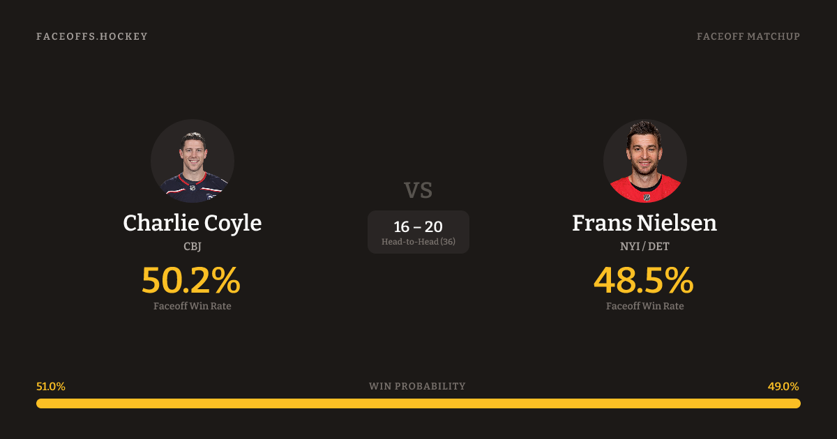 Charlie Coyle vs Frans Nielsen — Faceoff Head-to-Head