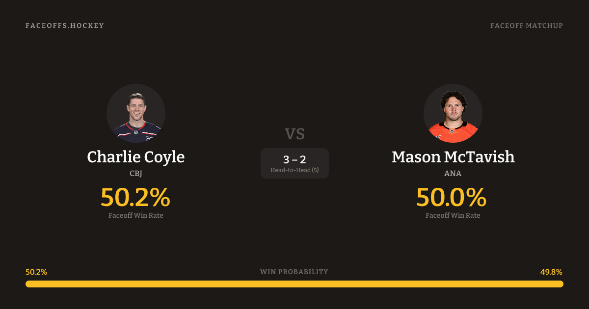 Charlie Coyle vs Mason McTavish — Faceoff Head-to-Head