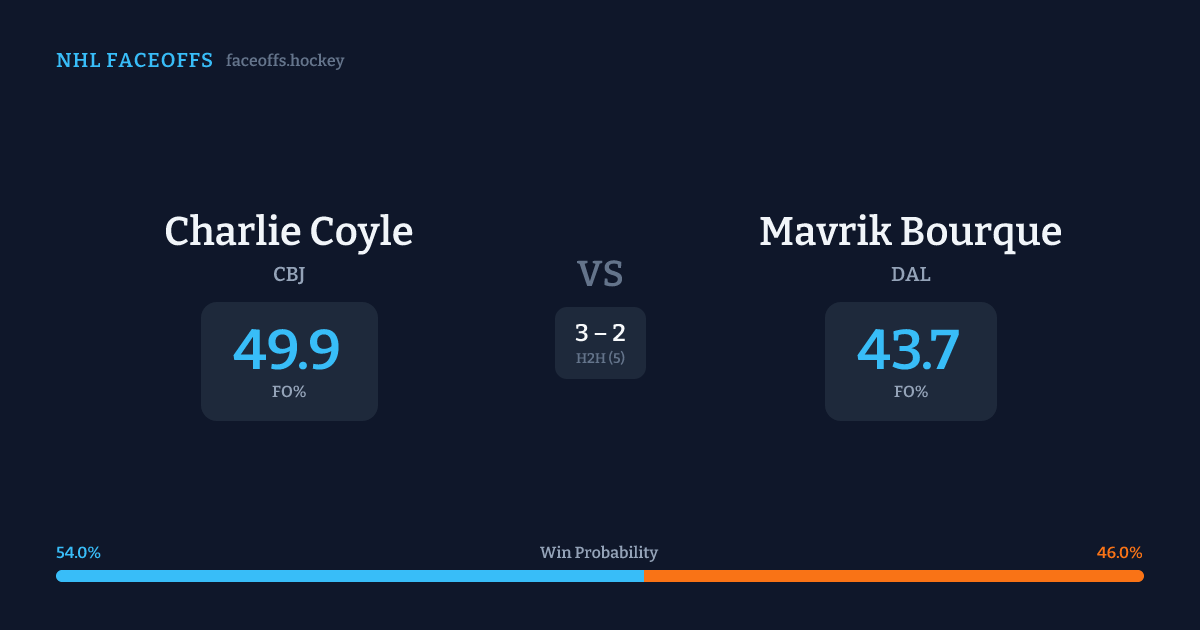 Charlie Coyle vs Mavrik Bourque — Faceoff Head-to-Head