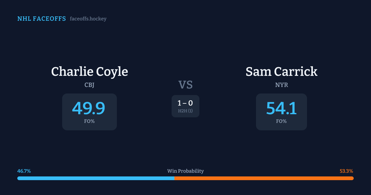 Charlie Coyle vs Sam Carrick — Faceoff Head-to-Head