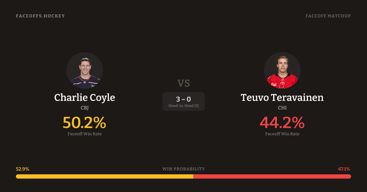 Charlie Coyle vs Teuvo Teravainen — Faceoff Head-to-Head