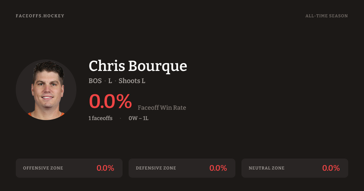 Chris Bourque has a 2012-13 faceoff win percentage of 0.0% across 1 faceoffs in the 2012-13 season. Best zone: Neutral (0.0%).