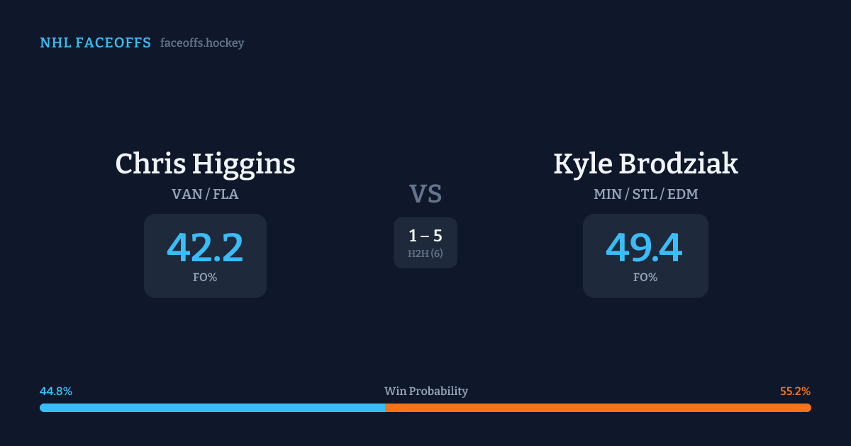 Chris Higgins vs Kyle Brodziak — Faceoff Head-to-Head