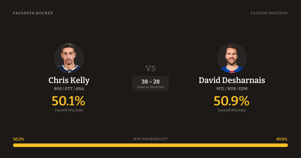 Chris Kelly vs David Desharnais — Faceoff Head-to-Head