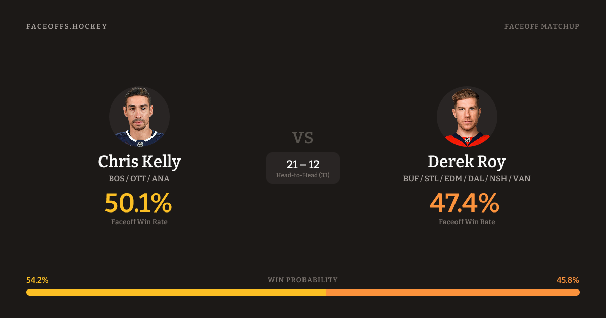 Chris Kelly vs Derek Roy — Faceoff Head-to-Head