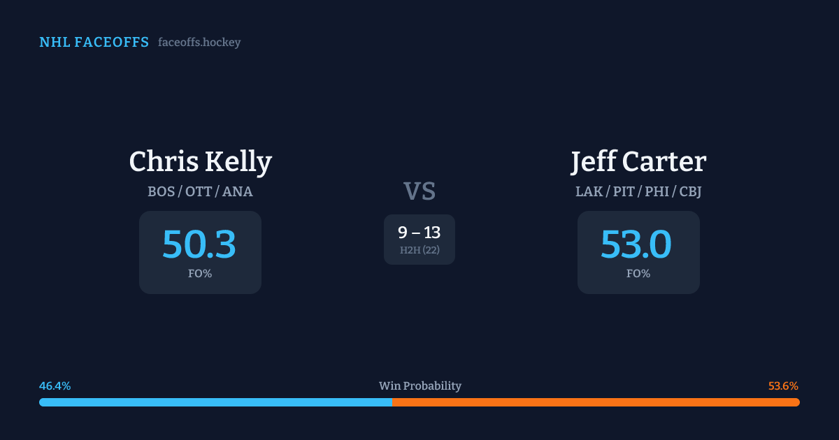 Chris Kelly vs Jeff Carter — Faceoff Head-to-Head