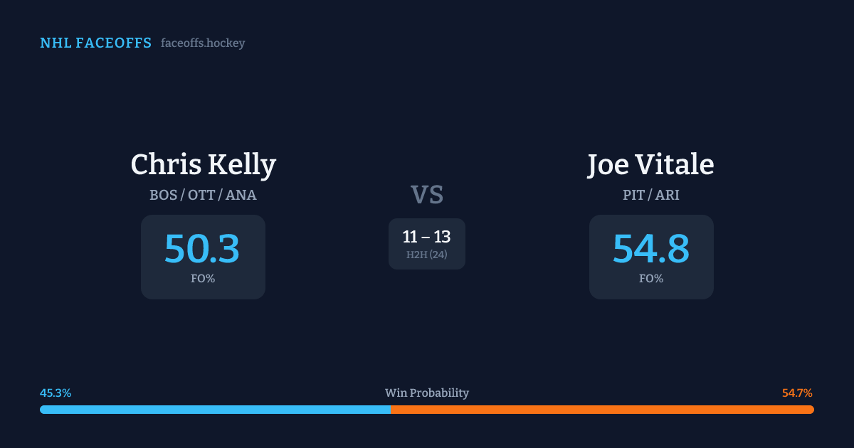 Chris Kelly vs Joe Vitale — Faceoff Head-to-Head