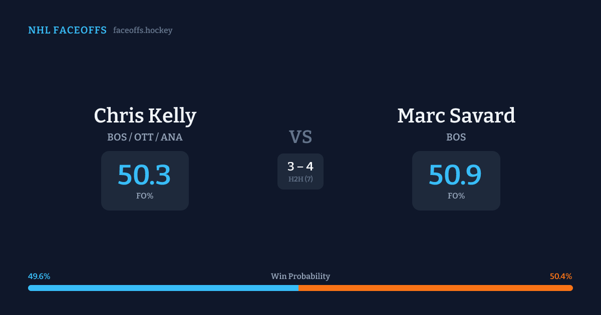 Chris Kelly vs Marc Savard — Faceoff Head-to-Head