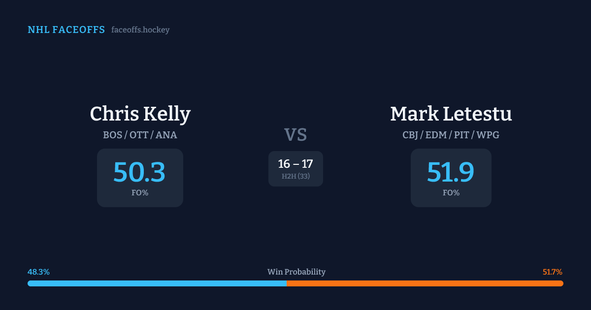 Chris Kelly vs Mark Letestu — Faceoff Head-to-Head
