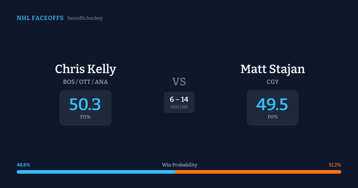 Chris Kelly vs Matt Stajan — Faceoff Head-to-Head