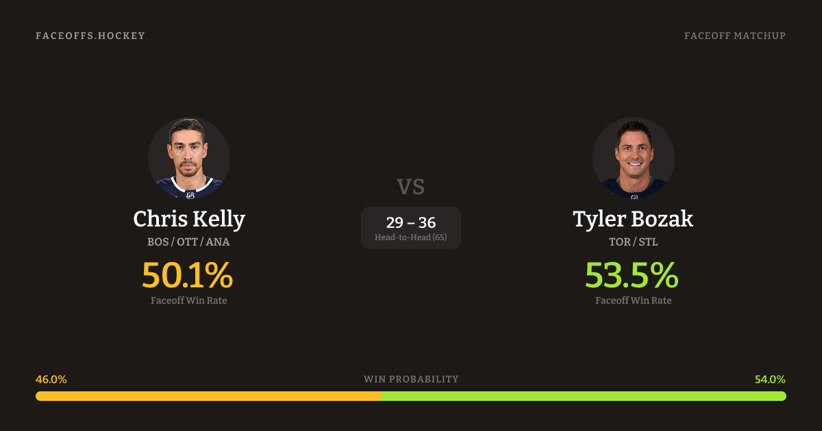 Chris Kelly vs Tyler Bozak — Faceoff Head-to-Head