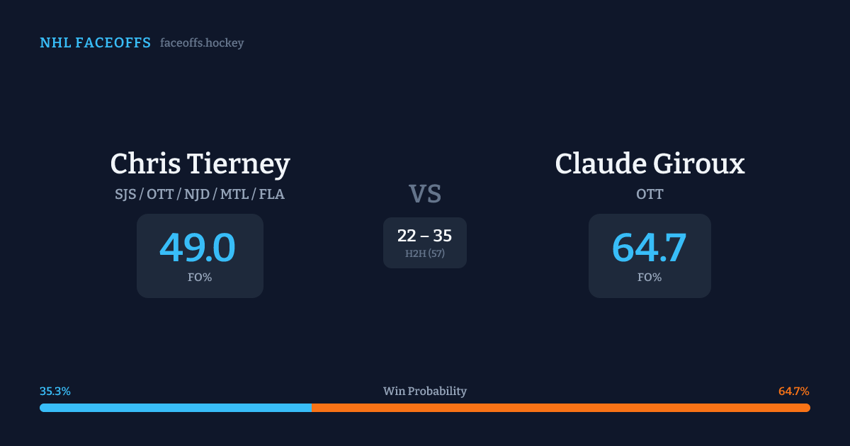 Chris Tierney vs Claude Giroux — Faceoff Head-to-Head