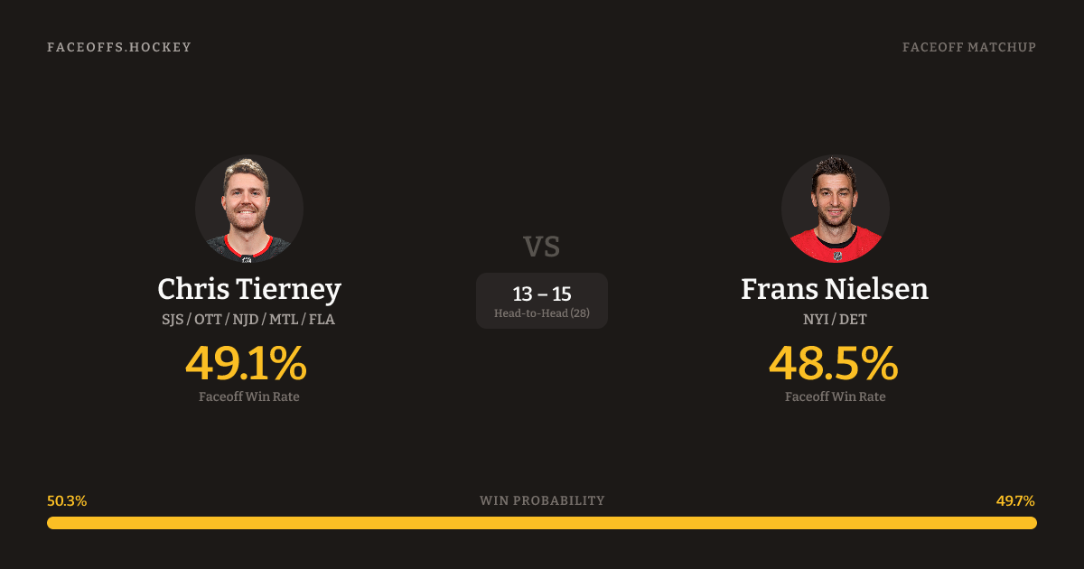 Chris Tierney vs Frans Nielsen — Faceoff Head-to-Head