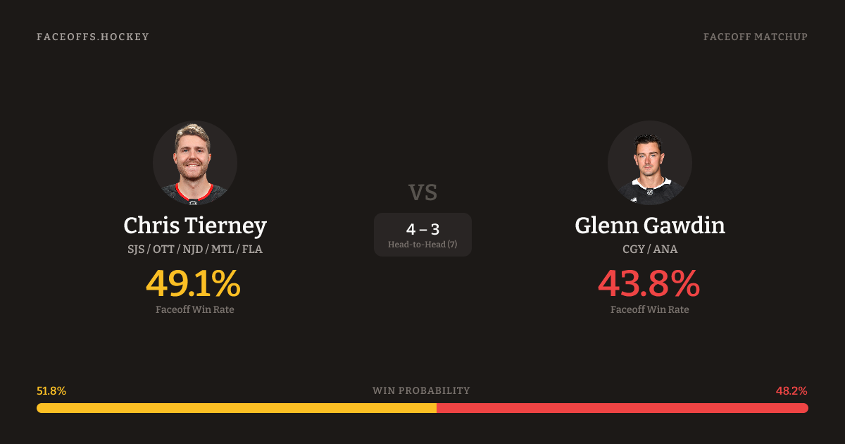 Chris Tierney vs Glenn Gawdin — Faceoff Head-to-Head
