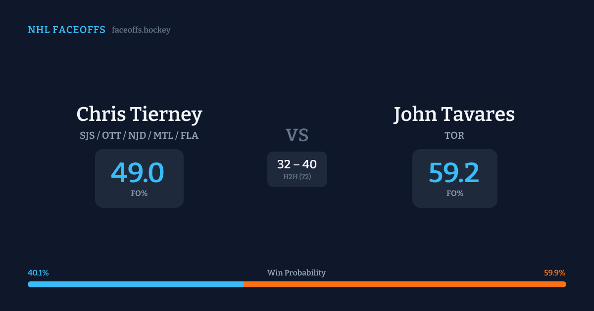 Chris Tierney vs John Tavares — Faceoff Head-to-Head