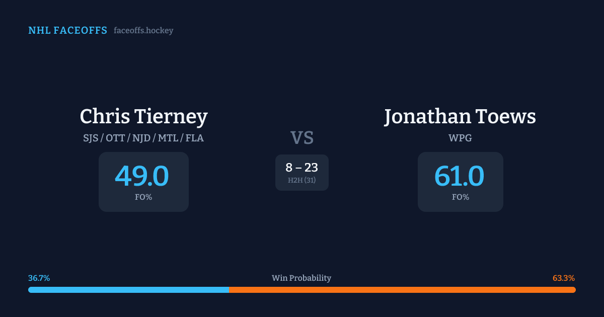 Chris Tierney vs Jonathan Toews — Faceoff Head-to-Head