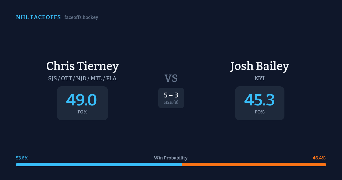Chris Tierney vs Josh Bailey — Faceoff Head-to-Head