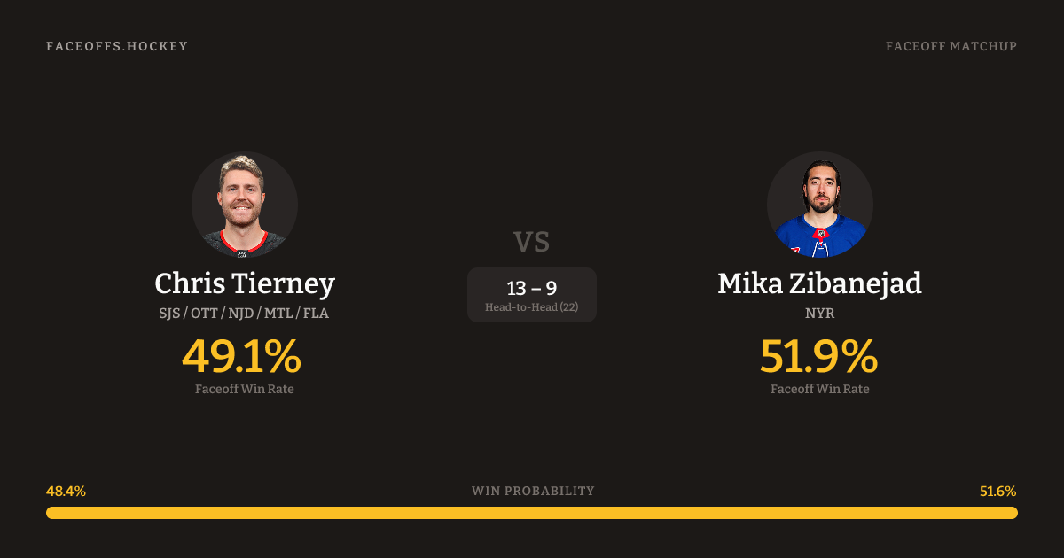 Chris Tierney vs Mika Zibanejad — Faceoff Head-to-Head