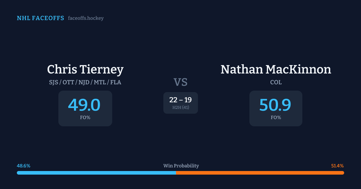 Chris Tierney vs Nathan MacKinnon — Faceoff Head-to-Head