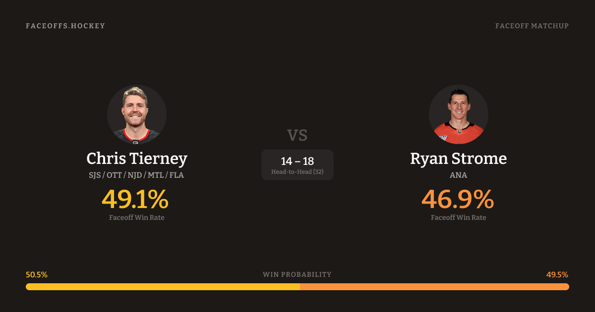 Chris Tierney vs Ryan Strome — Faceoff Head-to-Head