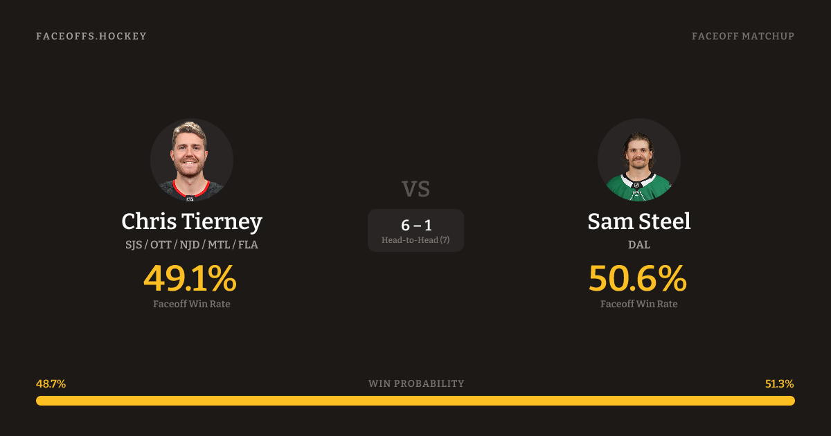 Chris Tierney vs Sam Steel — Faceoff Head-to-Head