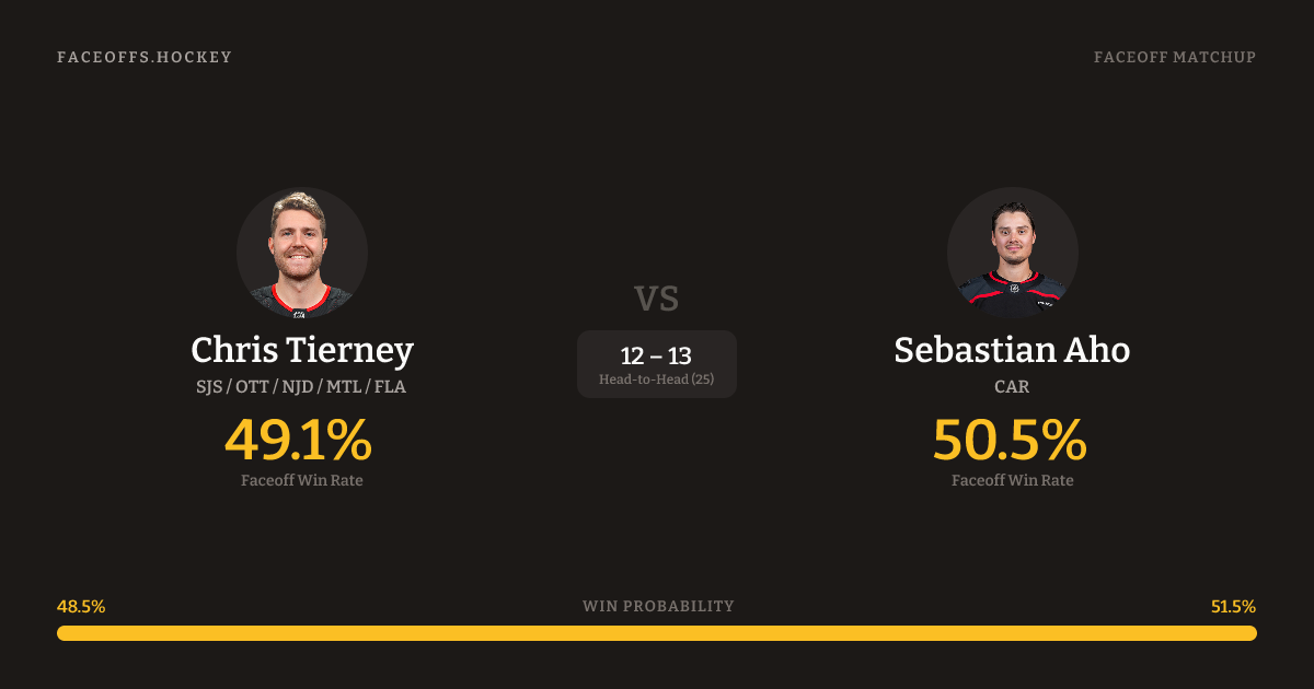 Chris Tierney vs Sebastian Aho — Faceoff Head-to-Head
