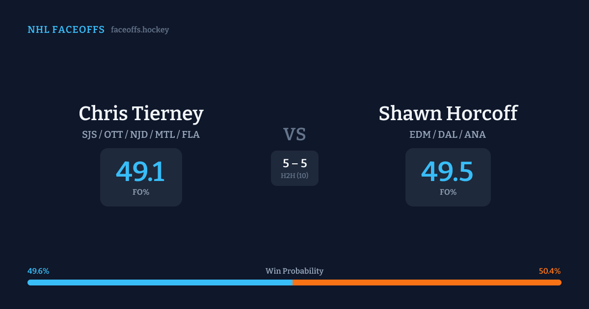 Chris Tierney vs Shawn Horcoff — Faceoff Head-to-Head