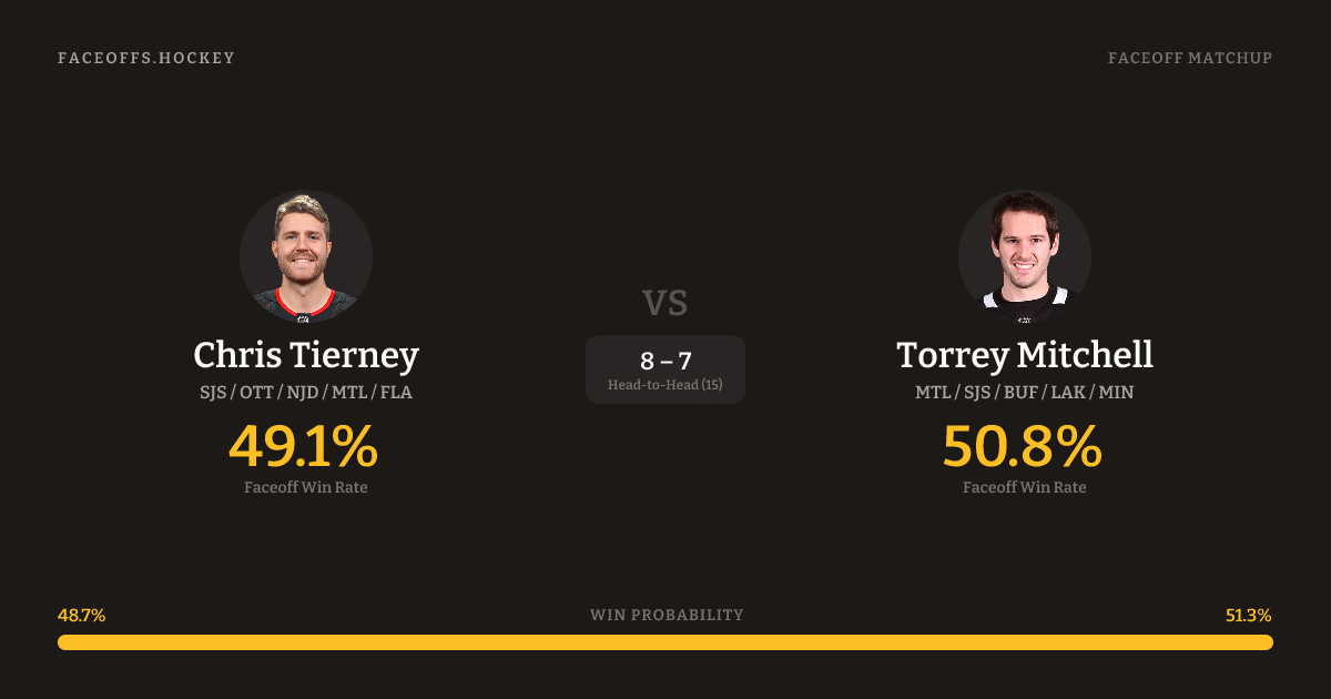Chris Tierney vs Torrey Mitchell — Faceoff Head-to-Head