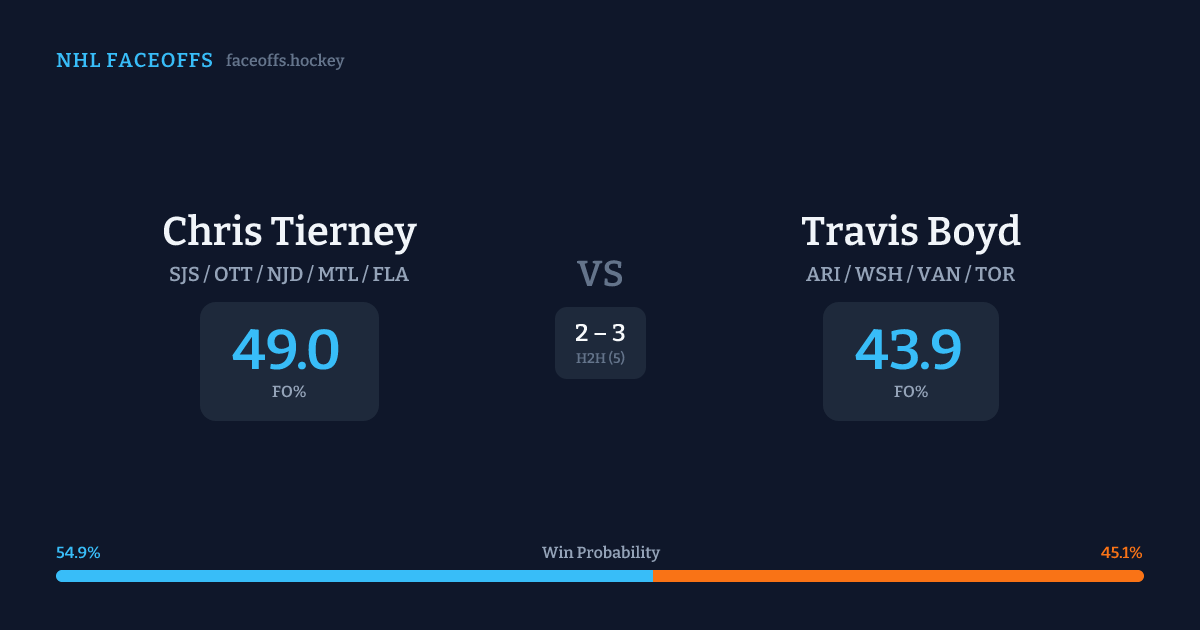 Chris Tierney vs Travis Boyd — Faceoff Head-to-Head