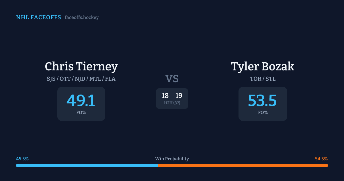 Chris Tierney vs Tyler Bozak — Faceoff Head-to-Head
