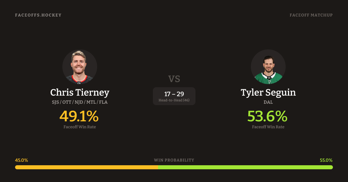 Chris Tierney vs Tyler Seguin — Faceoff Head-to-Head